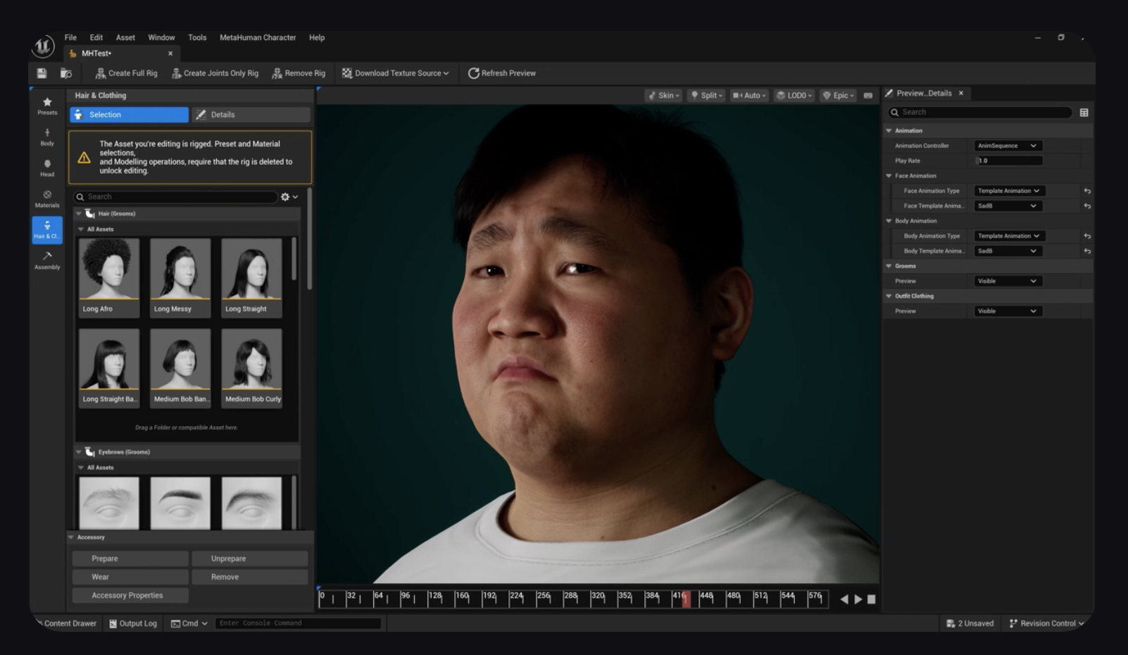Unlike basic 3D models or VTuber-style characters, Metahumans aren’t static. They come fully rigged with facial blend shapes, body morphs and animation-ready skeletons. You can control them with facial motion capture, body mocap suits or Unreal Engine’s internal animation tools.
