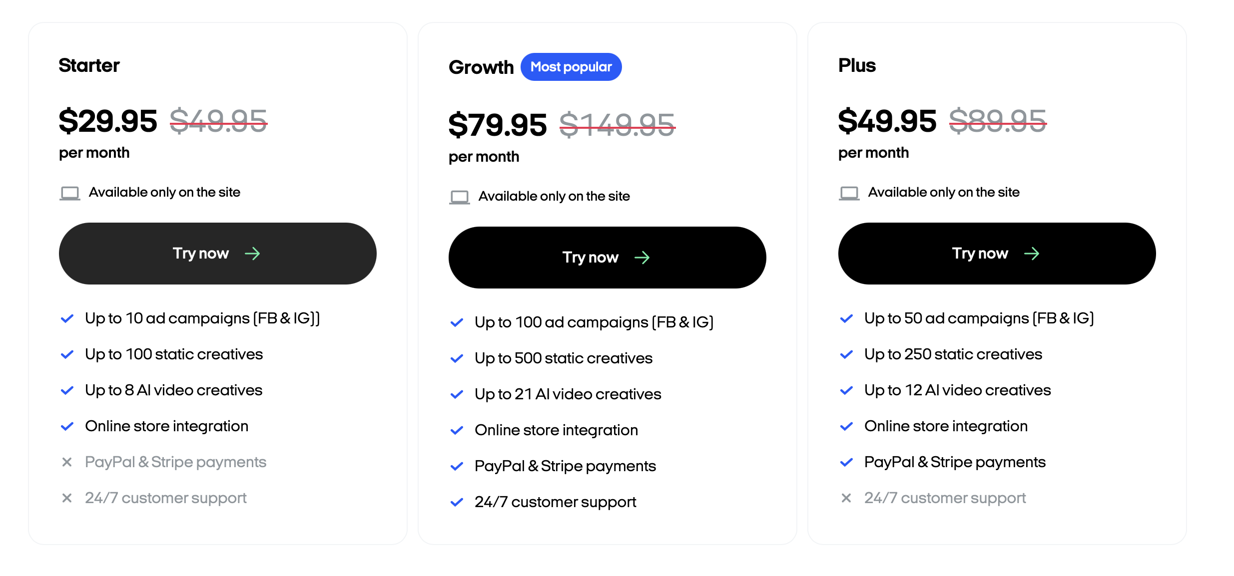 Pricing: Starter plans are $29.95 per month, including up to 10 ad campaigns for Facebook or Instagram.